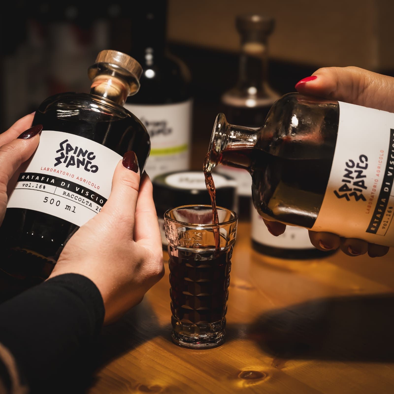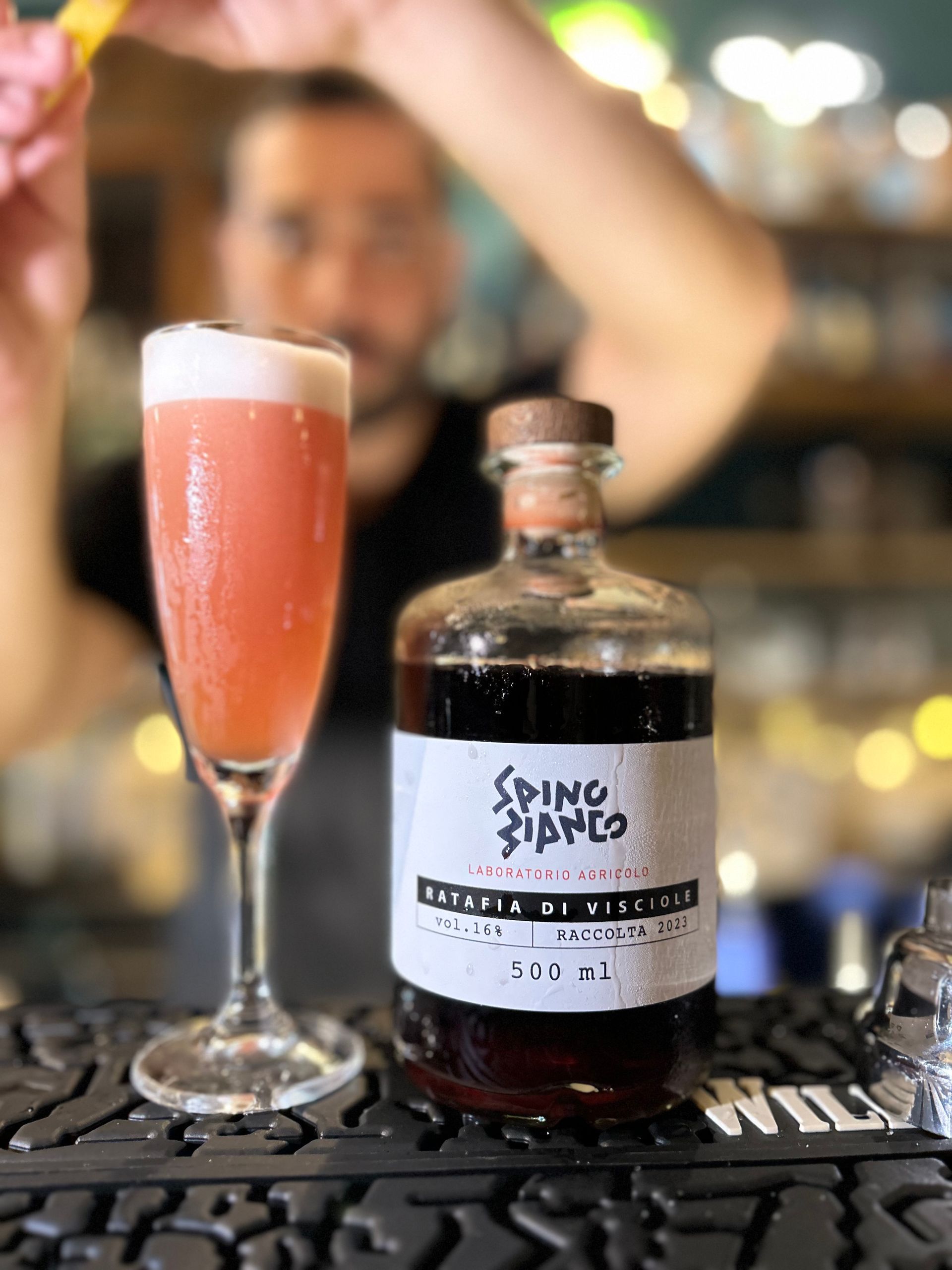 Le visciole sono il cuore pulsante di Spino Bianco. Da questa piccola ciliegia selvatica, ricca di acidità e carattere, nascono i nostri liquori più rappresentativi. La Ratafià di visciole, introdotta a Nettuno nel XIX secolo dai pastori in transumanza, unisce vino bianco e infusione naturale, senza solfiti né conservanti. Dal suo processo nasce anche il Vermouth di visciole, ottenuto da una seconda infusione che regala note più aromatiche.